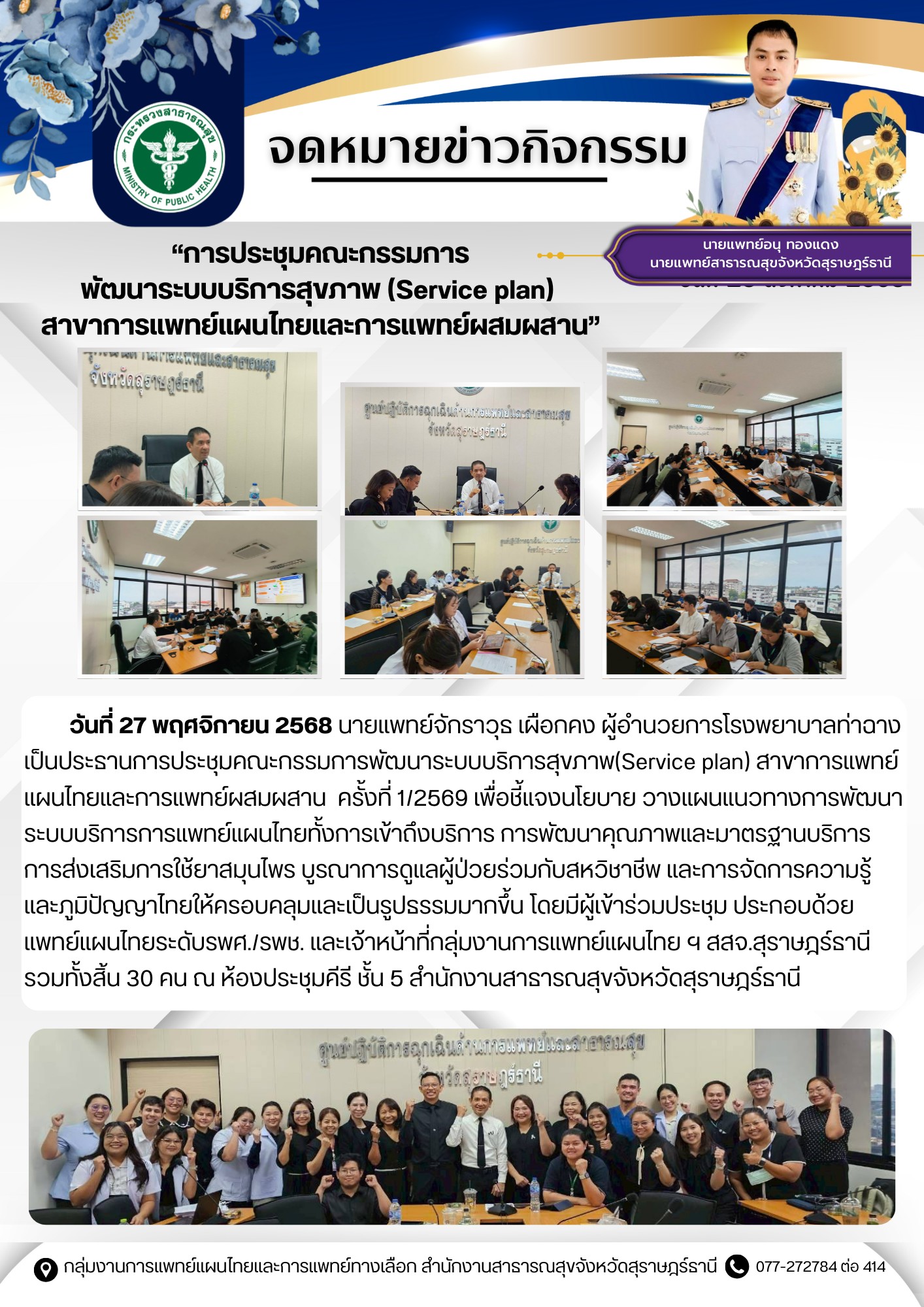กลุ่มงานการแพทย์แผนไทยและการแพทย์ทางเลือก สำนักงานสาธารณสุขจังหวัดสุราษฎร์ธานี เลขที่ 8 ถ.การุณราษฎร์ ต.ตลาด