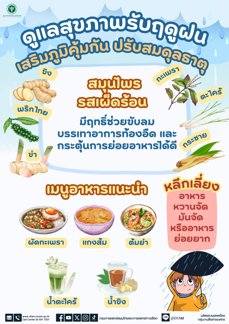 5. ดูแลสุขภาพรับฤดูฝนเสริมภูมิคุ้มกัน ปรับสมดุลธาตุ 16 ก.ย. 68 (อ่าน 26 ครั้ง) |