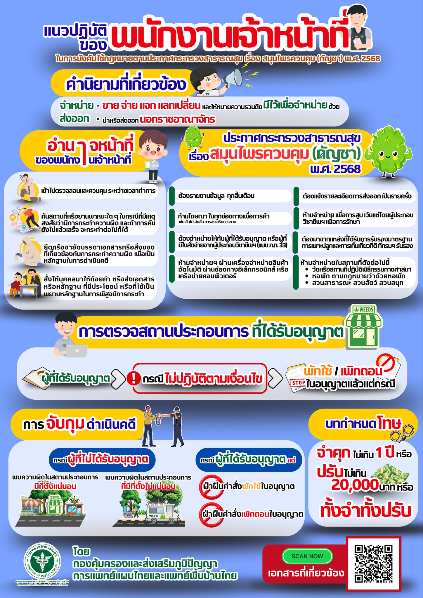 6. ข้อปฏิบัติและข้อห้ามตามประกาศสมุนไพรควบคุม (กัญชา) 2568 7 ส.ค. 68 (อ่าน 102 ครั้ง) |